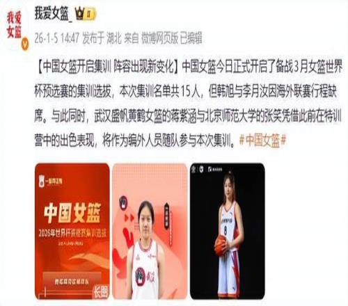 第三条:中国女篮开启集训,新增2人