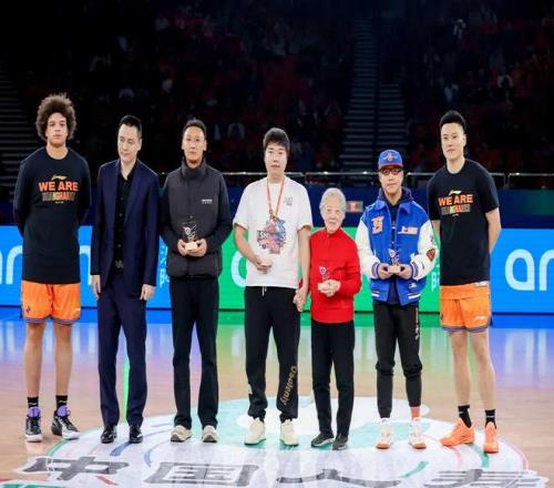 在仪式的最后,俱乐部向俱乐部功勋李秋平、姚明、章文琪和刘炜颁发功勋纪念章。这枚纪念章,是对那段峥嵘岁月最崇高的致敬。当他们并肩而立,仿佛时光在这一刻交汇,上海篮球的荣耀与传承尽收眼底。