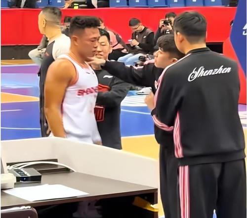 他在第一节,一次抢篮板时,被青岛男篮球员吕俊虎一巴掌扇在脸上,当时就痛苦地蹲在地上。从慢镜头看,吕俊虎并没有犯规嫌疑。
