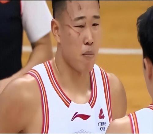 直到第二节最后阶段,贺希宁才重新上场。此时的贺希宁,右眼红肿,额头上、脸上,特别是右眼左右,都有明显的划痕,右眼也是肿的只剩一条缝,对此,他在赛后采访时说:“现场头很晕”。可见,受伤对他的影响有多大。
