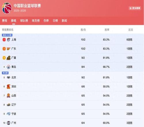 目前随着最新一个比赛日结束之后,CBA的排名也再度更新。我们来详细了解一下备受关注的广东、辽宁、北京这些球队的最新排名情况。