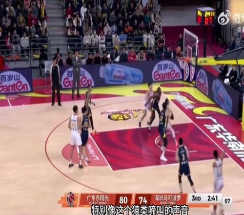 据了解,抖音CBA官方直播间广东vs深圳的解说员,在比赛中多次嬉笑着说“彻底疯狂啊今天,白天听到了两岸猿声”、“刚才听到有谁要球的声音特别的喜感,特别像猿类啼叫的声音”、“感觉是误入花果山”等涉嫌地域歧视的争议言论。