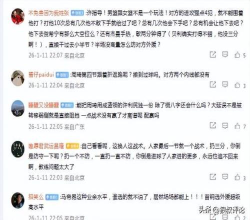 许指导!男篮跟女篮不是一个玩法!对方的进攻强点4犯,就不能围着他打?打他10次总有几次他不敢下手就给过了吧?总有几次他会下手吧?总有机会让他下去吧?他下去贺希宁有那么大空位么?还有杰曼手热,歇两分钟得了(贝利确实打得不错,他没三分啊!),直接干过去小半节?半场没商量怎么防对方外援?