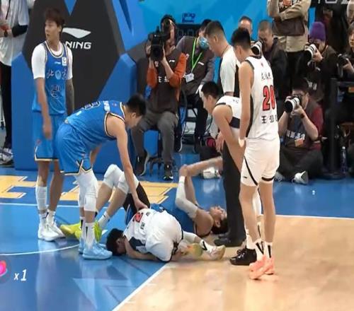 突发!广东队后场悍将徐杰,在比赛中,被北京队球员周琦撞到重伤,随后,徐杰被队友直接背出场……