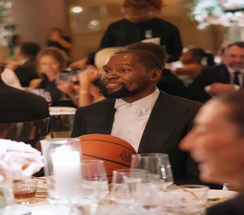 婚礼上,杜兰特被网友恶搞照片,显示他“带着篮球”参加婚礼,鲁克斯本人转发并调侃称“他只是在准备随时投篮”,展现了轻松幽默的一面。