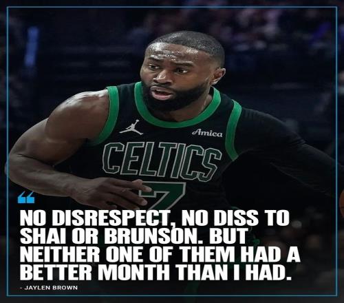 布伦森生涯曾在2023年2月、2024年3月各拿过一次月最佳,杰伦布朗生涯至今则从未拿过,甚至连周最佳都只有6次(2次发生在12月),所以肯定会更加在意。
