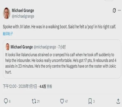 前面已经说过,约基奇的膝盖过度伸展,已经伤停了,预计休养4周再观察情况。