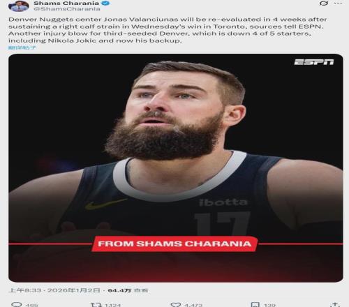 算上瓦兰,掘金已经有5名主力球员伤停。