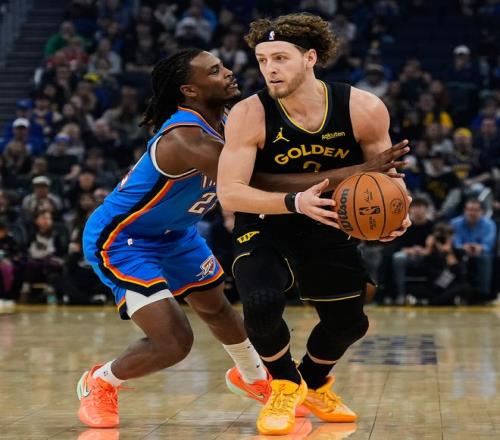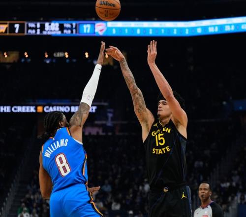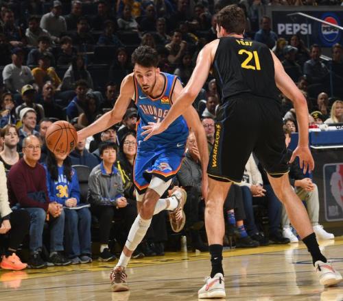 末节勇士这边还是常规轮换,戴姆波特是用米切尔、以赛亚-乔、维金斯、肯里奇、卡尔森的阵容,这套阵容算是雷霆的第三阵容,雷霆用发展联盟阵容打勇士第二阵容,雷霆还继续扩大分差,比赛走入垃圾时间。