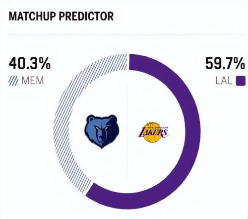 截止到目前,湖人战绩20胜11负,排名降至西部第五。作为对比,灰熊队目前以15胜18负的战绩,排名西部第九,打得算是中规中矩。赛前,美媒ESPN对本场比赛进行了胜率预测,湖人胜率为59.7% ,略占优势,灰熊队胜率则仅有40.3%。