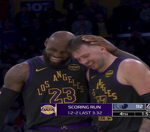NBA常规赛继续进行,洛杉矶湖人队(21胜11负)重拾胜利。东契奇得到34分、6个篮板和8次助攻,勒布朗得到31分、9个篮板和6次助攻,他们率队在第四节关键时刻打出12-2的小高潮一举确立胜局,湖人队在主场以128-121战胜孟菲斯灰熊队(15胜19负)。灰熊队吞下3连败。