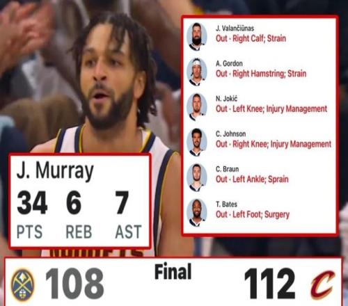 在伤了几乎一套首发阵容的背景下,穆雷能带掘金打成这样已经很不错了,本场他的正负值达到+5,也能说明他在场时掘金确实打得足够好——相当于穆雷不在场的9分钟时间里,掘金净负了骑士10分之多。