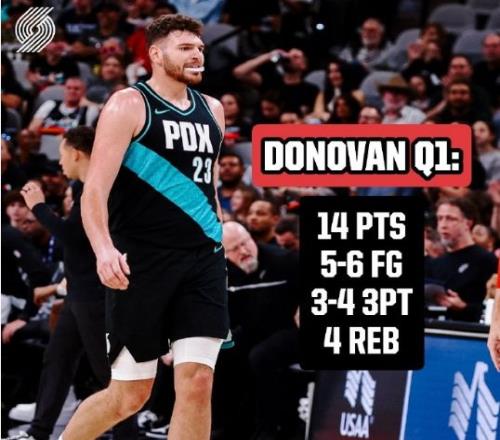 开拓者上一场客场122-109战胜鹈鹕,马刺过去两场连赢尼克斯与步行者收获2连胜,本赛季首次交锋开拓者主场102-115输给马刺。本场首节比赛,克林根上篮与3记三分包揽开拓者前11分,科内特两次上篮与空接暴扣接连得到6分,福克斯接连两次上篮命中,开拓者4罚3中。西索科与卡马拉各中一记三分,克林根空接暴扣扩大22-10领先,尚帕尼三分与补扣连得5分,开拓者连续两次上篮得分。马刺一波6-0攻势,杨瀚森大帽哈珀,乐福里外开花一人引领7-1攻势扩大13分优势,布莱恩特两罚全中,首节结束开拓者35-24领先马刺。首节开拓者三分12中6,克林根6中5得到14分,杨瀚森3分58秒0分1篮板1助攻1盖帽,马刺三分8中1。