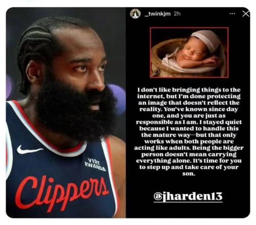 美丽的童话故事还没说上俩月,就转成限制级了...一位名叫凯尔西的女子在Instagram上直接喊话哈登:“是时候站出来,承担起对儿子的责任了! ”