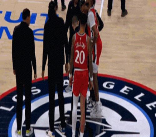 他在争抢球权的时候被普里查德压到膝盖