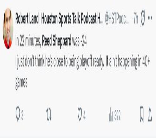 休媒:谢泼德仅出战22分钟在场-24,我觉得他距离一个能在季后赛登场的球员还差得很远,一个已经打了40场+NBA比赛的球员来说他的表现根本不及格。