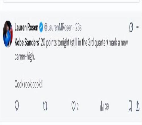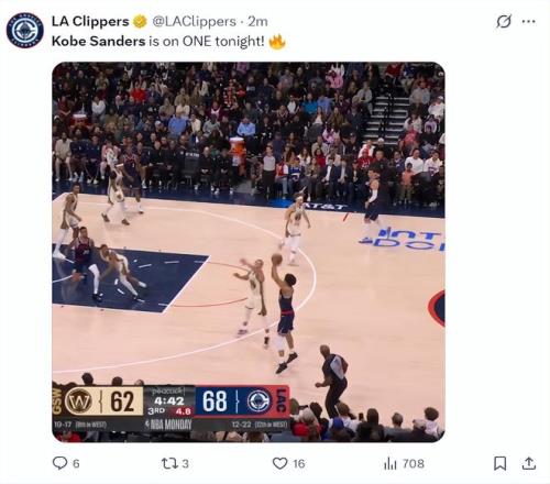 快船记者Lauren Rosen:桑德斯三节拿到20分已经创造生涯新高,微波炉球员。