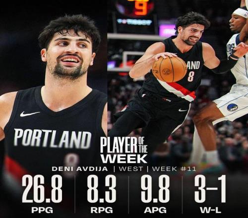 从各方面你都可以看出来,现在这支开拓者就是阿夫迪亚的球队,未来几年开拓者肯定围绕他打造阵容(阿夫迪亚合同2028年到期,剩下两年薪水1312万、1187万递减),他的第一次周最佳已经来了,第一次全明星,应该也不远了。