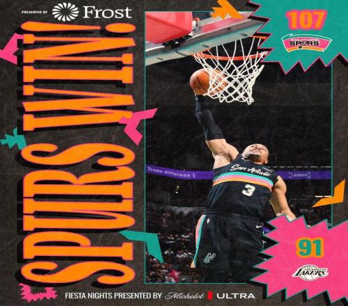 马刺队的约翰逊得到27分和6个篮板,文班亚马得到16分和14个篮板,卡斯尔得到15分、5个篮板和4次助攻,福克斯得到14分和5个篮板,查帕涅得到11分和9个篮板。湖人队的东契奇得到三双38分、10个篮板和10次助攻,拉拉维亚得到16分和7个篮板,海耶斯得到10分和7个篮板,艾顿得到9分和6个篮板。
