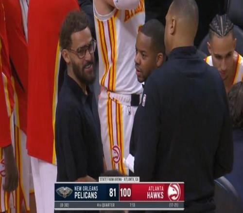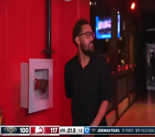 今天奇才和老鹰都有比赛,奇才结束的稍早,交易被曝出的时候已经打完了比赛。而老鹰还在和鹈鹕交战,特雷-杨就坐在板凳席上。听到了自己被交易的消息,特雷-杨先是起身回到更衣室,随后又回到了板凳席。