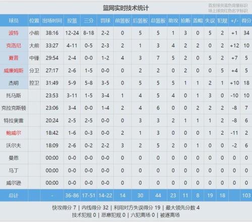 篮网这边,小波特疯狂出手18次三分球。全场比赛,小波特24投12中,三分18中8,罚球2中2,空砍34分5篮板1助攻3抢断5失误,正负值+1。小波特已经连续7场比赛得分20+,他也是篮网队史最快命中100记三分的球员。