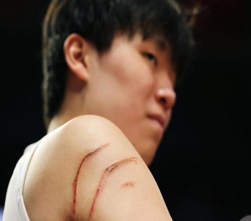 杨瀚森整体表现也没有让人失望,没有畏畏缩缩,反而各种肉搏,甚至手臂都被抓出血痕,不得不说亚当斯太狠!