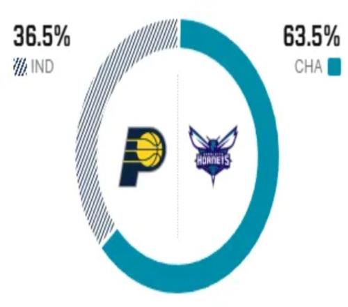 赛前,美媒ESPN对本场比赛进行了胜率预测,步行者胜率仅有36.5%,黄蜂队胜率则高达63.5%, 对比依旧明显。