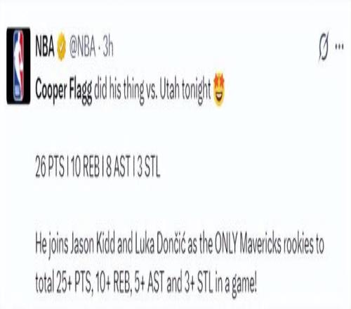 2.他成为基德、东契奇后独行侠队史第三位25+10+5+3抢断的新秀;