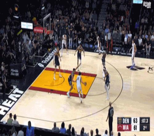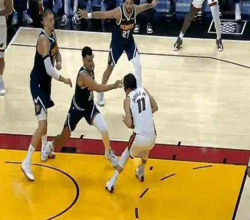 上半场,热火和掘金各自打了一节好球。热火先发制人,掘金是追分的一方。次节最后时刻,掘金已经将比分追上,但最后一个防守回合突遭变故。