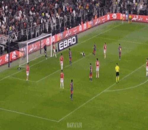 这是巴萨的反击,费尔明送上传球,禁区右肋,巴德吉闪转腾挪,连续变向、急转、假动作,拉开角度之后右脚抽射,皮球从乌奈-西蒙腋下钻入网窝。