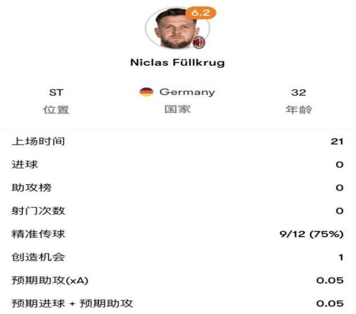 即便比赛时间距离交易官宣只有几小时,菲尔克鲁格已经在米兰内洛训练了好几天。德国人在第69分钟替下莱昂,并在随后展现出不错的状态。菲尔克鲁格的登场,让米兰场上的重心整体前移,比分落后的卡利亚里其后机会寥寥。第87分钟,莫德里奇从纵深区域长传,菲尔克鲁格背对球门,仅凭直觉就为前插的里奇送出后仰头球摆渡,又在重新得球后试图助攻普利希奇,可皮球最终被卡普里莱封出。