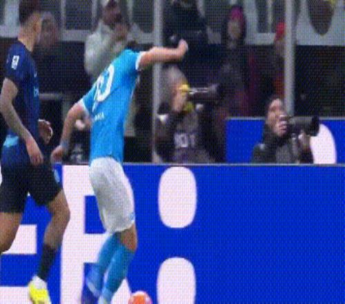 上半场开始仅仅9分钟,国米就已经取得领先,迪尔马科在禁区内接球,随后小角度抽射远角破门,国米在主场率先打破僵局。不过比赛的形势,并没有朝着国米球迷希望的剧本进行。之后那不勒斯反扑,很快麦克托米奈就在前点近距离抢射,为客队扳平比分。