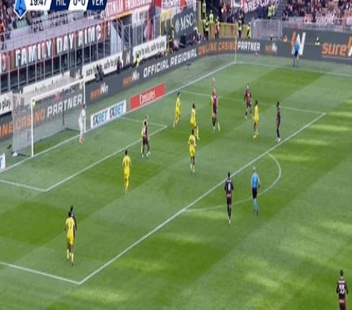 半场补时第11分钟,米兰前场右侧角球机会,皮球主罚到禁区,拉比奥特头球摆渡,后门柱位置普利西奇凌空推射破门,AC米兰1-0领先维罗纳。本赛季15次出场,美国队长打进10球,堪称球队进攻大腿。