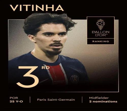 常规的2024-25赛季再加上扩军版世俱杯,维蒂尼亚最终各线出战59场贡献8球5助攻。从2025上半年直到7月的发挥,都属绝对的上乘,维蒂尼亚最终在金球奖评选中排名第3,实至名归,也是弥足珍贵:自哈维、伊涅斯塔鼎盛的年代之后,最近十余年也只有莫德里奇、罗德里两位金球得主,以及若日尼奥、德布劳内、贝林厄姆等少数代表,能够作为中场跻身金球评选前三。