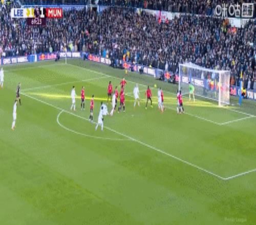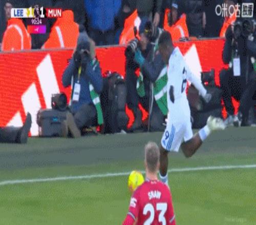 第62分钟,海文防守不利,阿伦森小角度破门,利兹联1-0领先曼联!