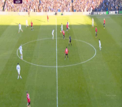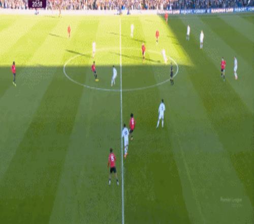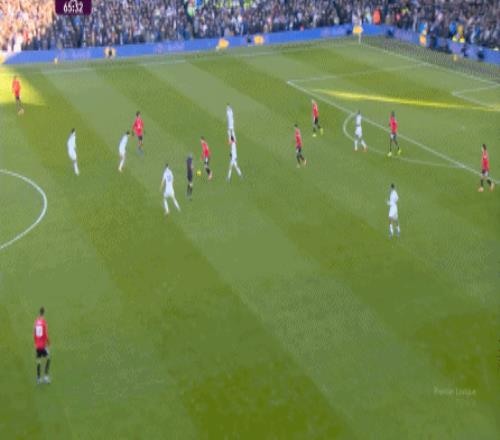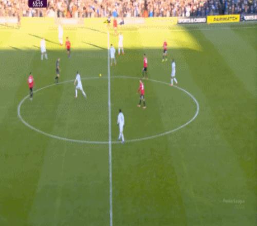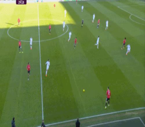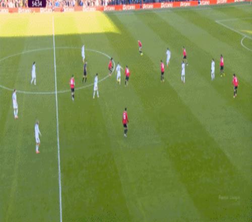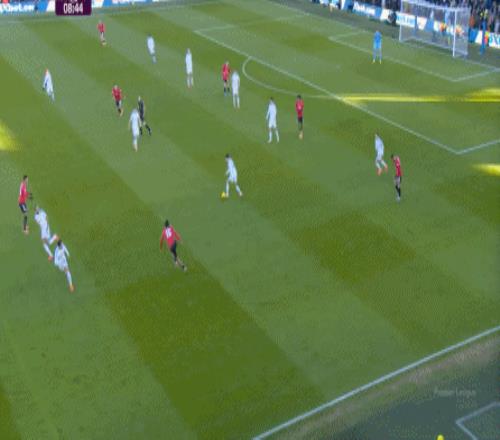 利兹联也可以抓住曼联经典的战术问题——两线之间的空当,然后制造出他们全场运动战环节的最好一次进攻: