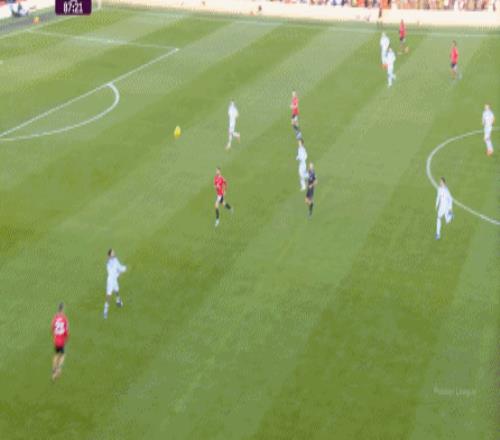 这也体现在比赛第16分钟,曼联用很简单的方式就打穿了利兹联的中路防线,让谢什科获得了进球机会: