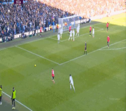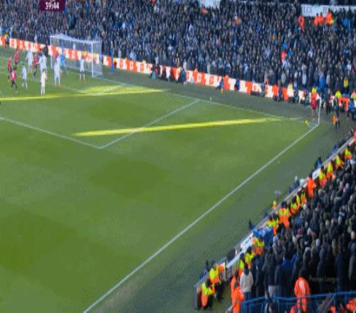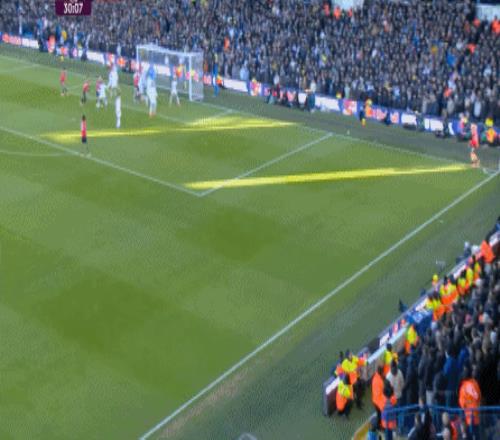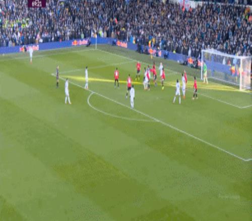 所以下半场回来,两支球队在强度的鞭策下,都打出了一些内容,但也都踢得让人有些语塞,比如利兹联的界外球,在解围后直接形成了起脚机会:
