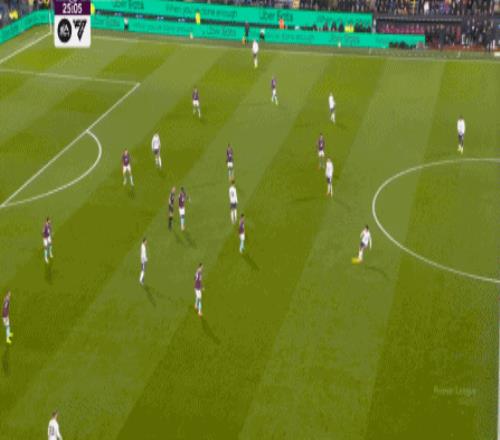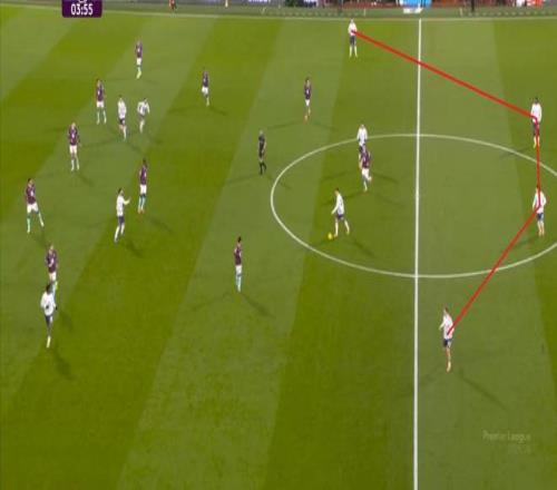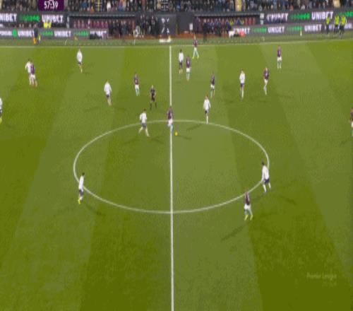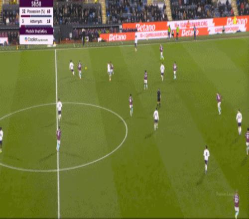 而且,攻转守的逻辑也重新发生了变化,比如这次谢什科没有接好球,立刻被伯恩利发展到边路,于是你可以看到,中场、右中卫和右后卫需要形成三人之间的轮转: