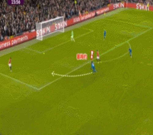 这一次的退防可以从曼联的后场30米区域看起,当时塞梅尼奥处于无球状态,他意识到曼联的左边中卫卢克肖将会前插,于是塞梅尼奥非常警觉地一路高速回追。