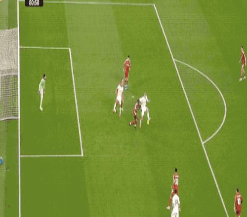 第31分钟,阿利松门前玩火,外脚背将球传到中路,阿姆帕杜的射门没有力量和速度,阿利松将球没收。