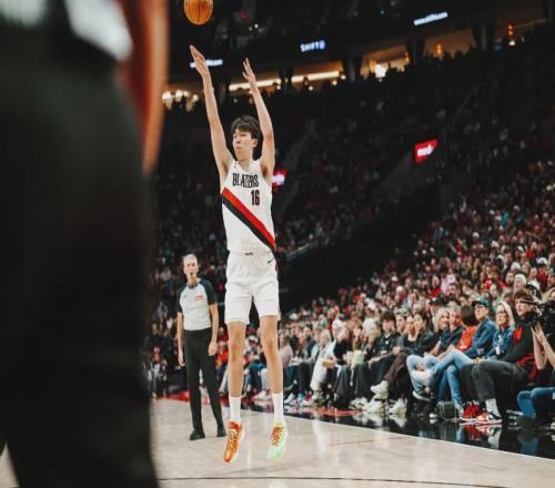 杨瀚森NBA生涯第二记三分!开拓者战绿军速射+开枪庆祝点燃主场