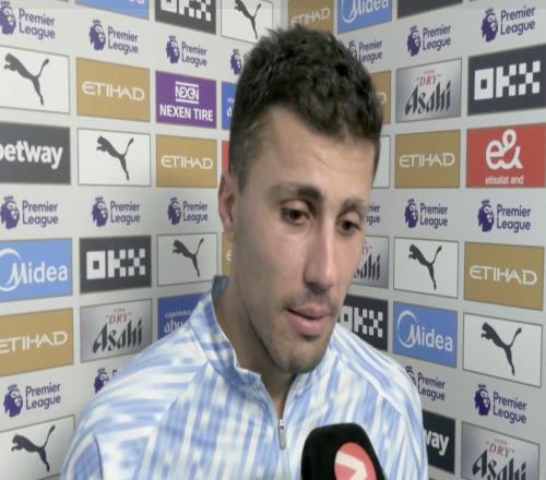 英超第20轮,曼城主场1-1战平切尔西,赛后,曼城中场罗德里接受了Viaplay Fotball的采访。首先,罗德里,很高兴看到你...