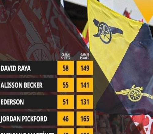 拉亚149场英超58次零封,英超门将同期最多